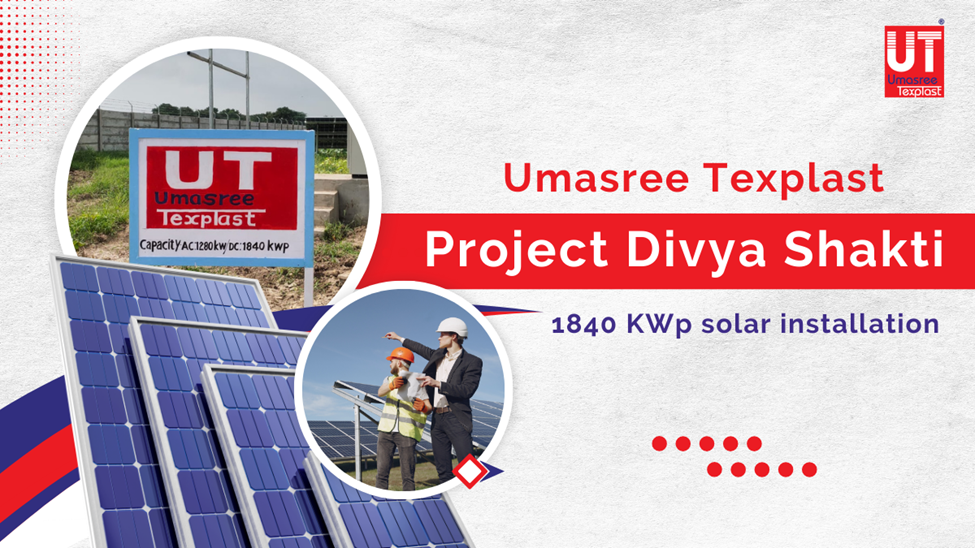 Our latest step in this journey is Project दिव्य शक्ति (Divya Shakti) – a large-scale solar initiative that ensures Umasree Texplast meets its energy requirements responsibly, while reducing dependency on non-renewable power sources.